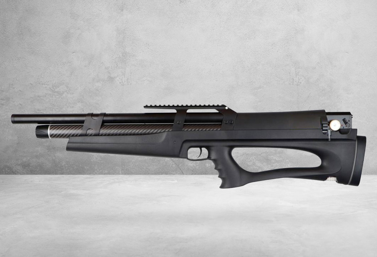 Den syntetiske udgave er skabt med fokus på holdbarhed og funktionalitet. Skæftet er modstandsdygtigt over for fugt, temperatursvingninger og hårdere håndtering, hvilket gør riflen velegnet til intensiv brug og skiftende forhold. Designet er ergonomisk afstemt, så riflen ligger naturligt i skulderen, og bullpup-layoutet holder den samlede længde nede uden at ofre pibelængde eller balance. Det giver en kompakt, men stadig stabil platform